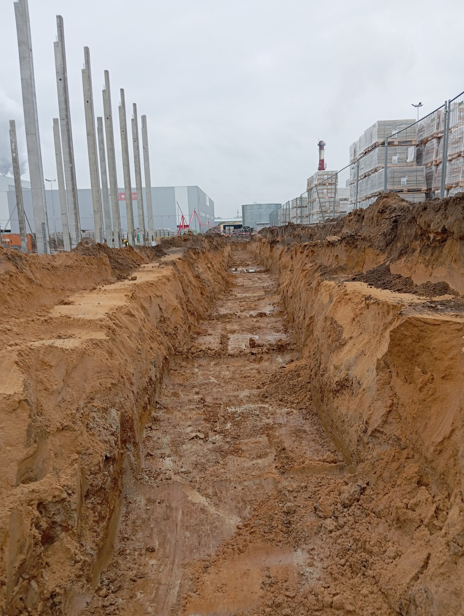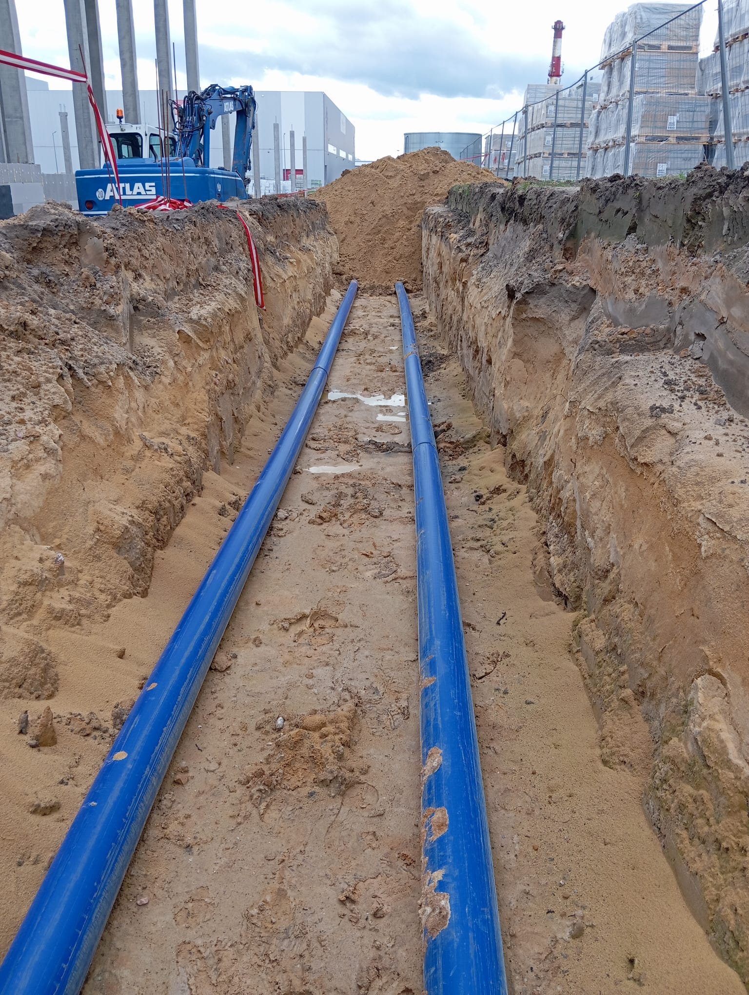 Zakres prac obejmuje: Instalacje sanitarne zewnętrzne; Kanalizację deszczową; Kanalizację sanitarną; Wodę; Gaz.